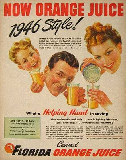 In the 1920s, California citrus growers were faced with a surplus of oranges. They hired adman Albert Lasker, who transformed the occasional treat into a daily necessity with the slogan "Drink an orange." The campaign was so successful that per capita consumption of oranges rose 400% in the next fifteen years.