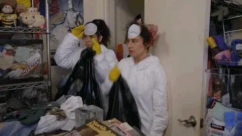 A bag of expired flour that has somehow grown hair. The jar of mystery sauce from 2019. Three (not so) recently divorced Tupperware lids. Five packets of soy sauce from the "misc. drawer." A yogurt that expired so long ago it's legally allowed to both drink and vote. The optimistically purchased vegetable spiralizer that turned exactly one zucchini into "pasta" (before realizing that zucchini pasta is really really gross). The quarantine sourdough starter named "Bread Pitt" that never resurrected no matter how hard you tried (you didn’t really try that hard tbh). That fancy $17 French sea salt you bought after watching "Salt Fat Acid Heat." Seventeen grocery bags stuffed inside other reusable grocery bags. And one million takeout menus from restaurants that now have “daily deals” on UberEats but have retired their $10 lunchtime special. They. Have. All. Got. To. Go.