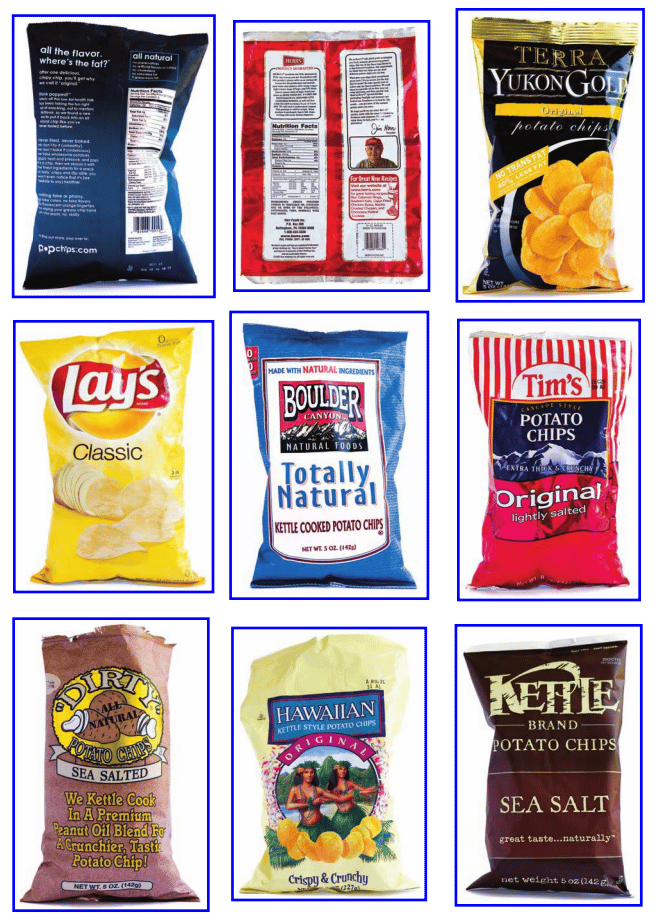 Even shelf placement tells a story about class identity. Those bright, crinkly bags of regular chips live on lower shelves where kids can see them. The matte-finish "premium" bags perch up high, using sophisticated fonts and subdued colors to signal their elevated status.