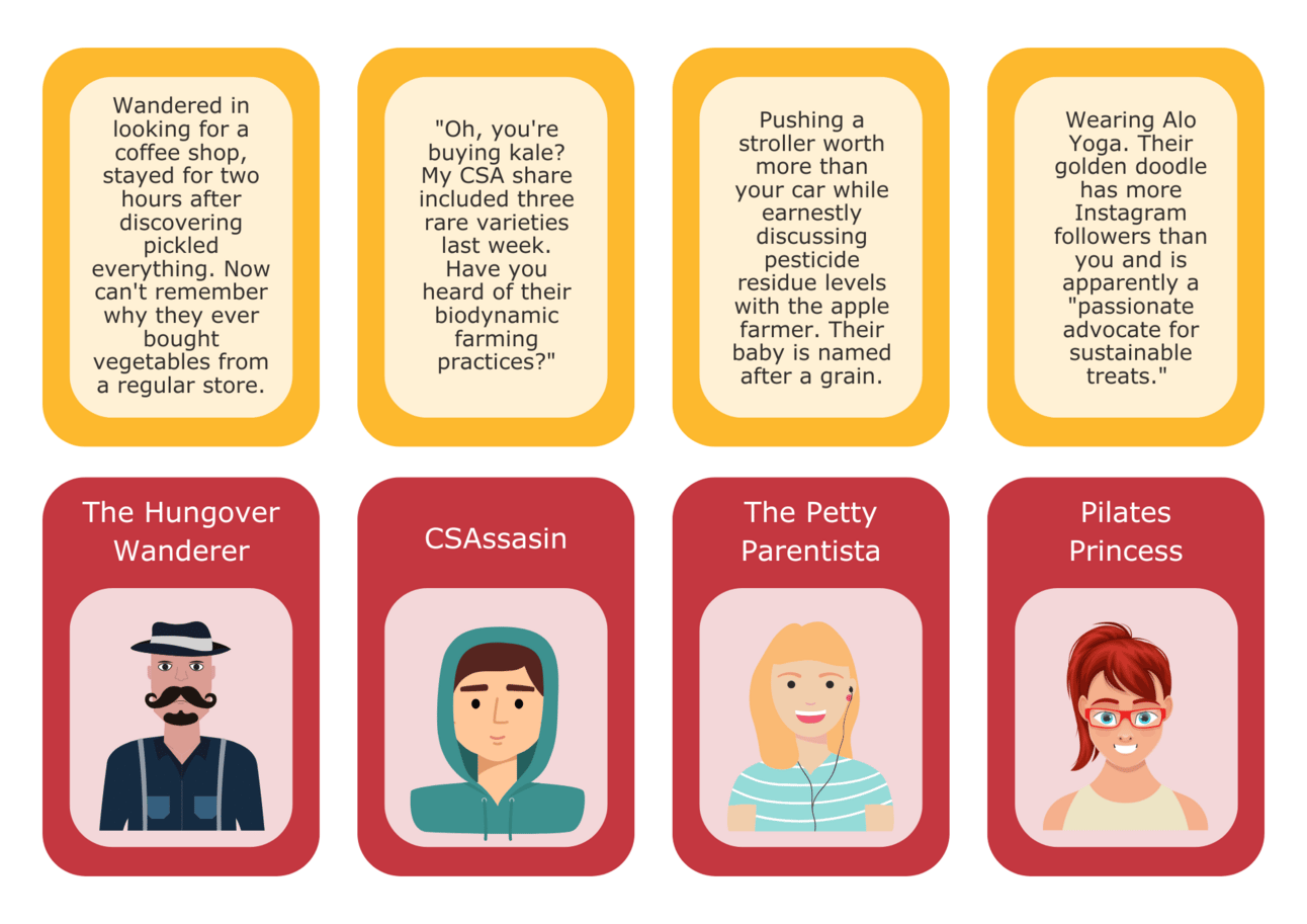 So before we jump into the history of farmers markets and the many secrets that they hold, please humor me while I detail the eight people you are bound to run into at the farmer’s market each week: